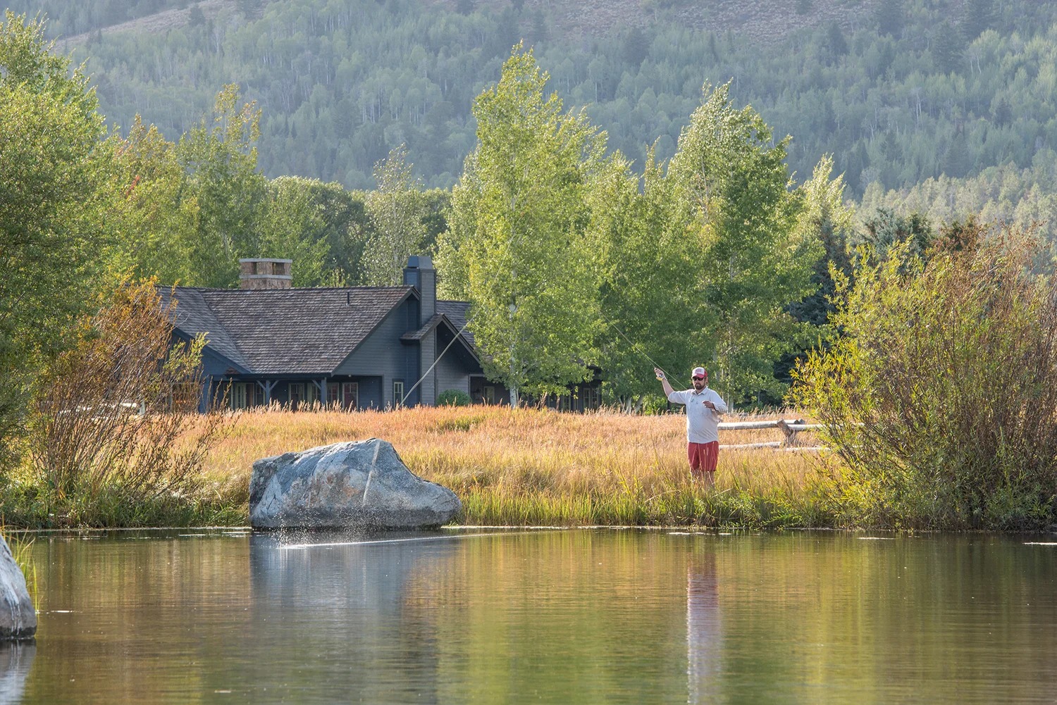 Private stocked pond with dock