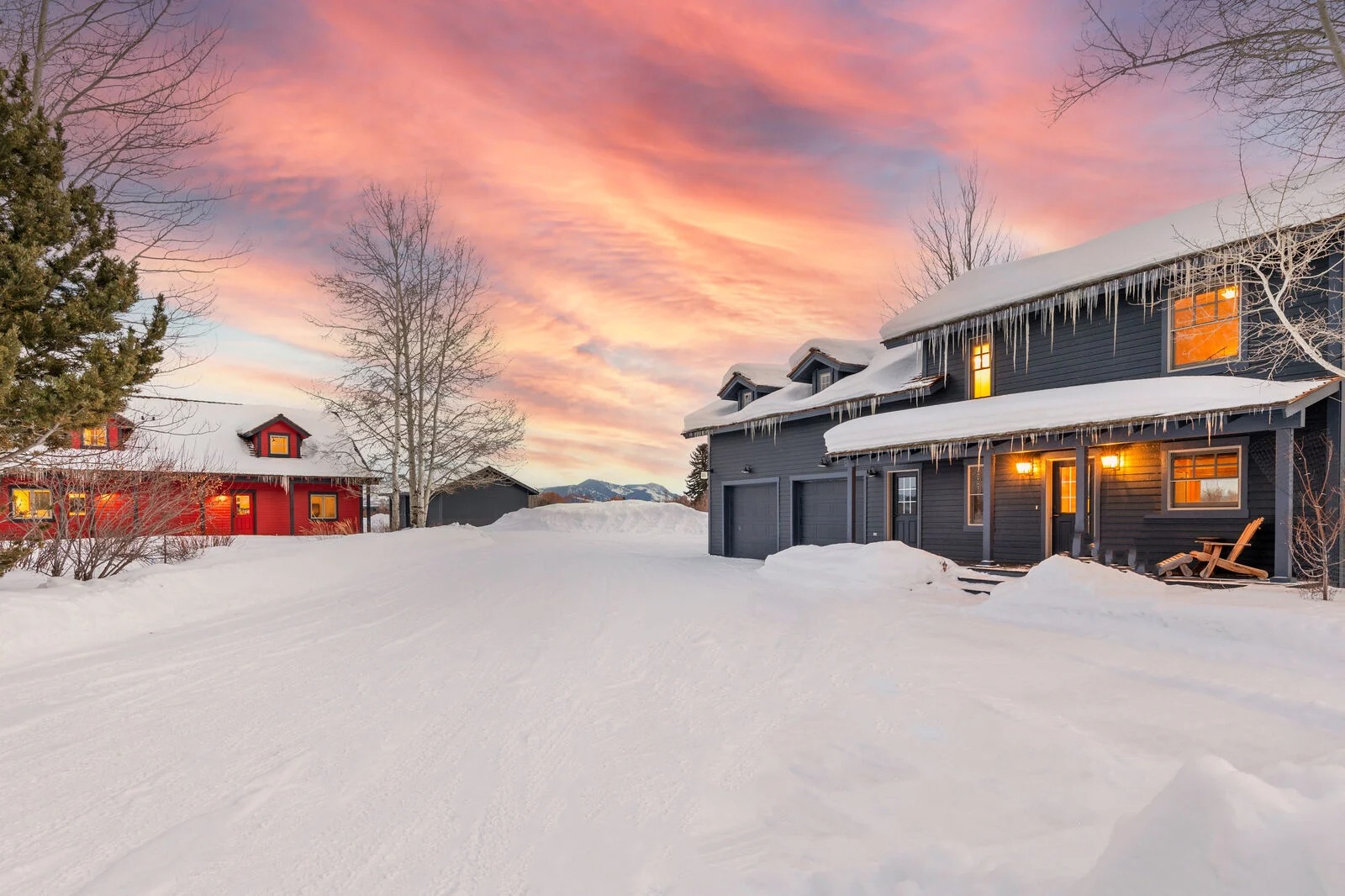 Set on 20 private acres beneath the Tetons, Open Meadows is where the landscape does half the work—and everything else is designed to meet it. With a main house, guest house, and barn, the estate was built for both gathering and breathing room.